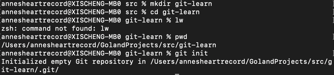 首先我们创建一个git-learn目录,通过git init来初始化git仓库。