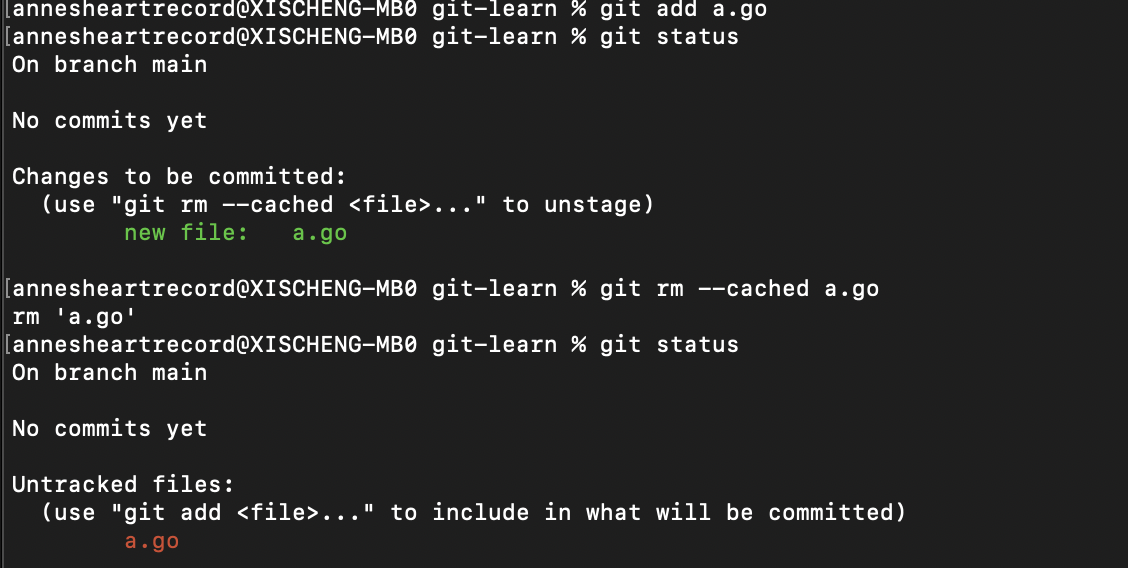 git rm命令可以将文件从版本控制中移除,即将文件从 Git 仓库的历史记录中删除。这样,文件在将来的提交中将不再被跟踪。 - 从暂存区中移除文件 :使用